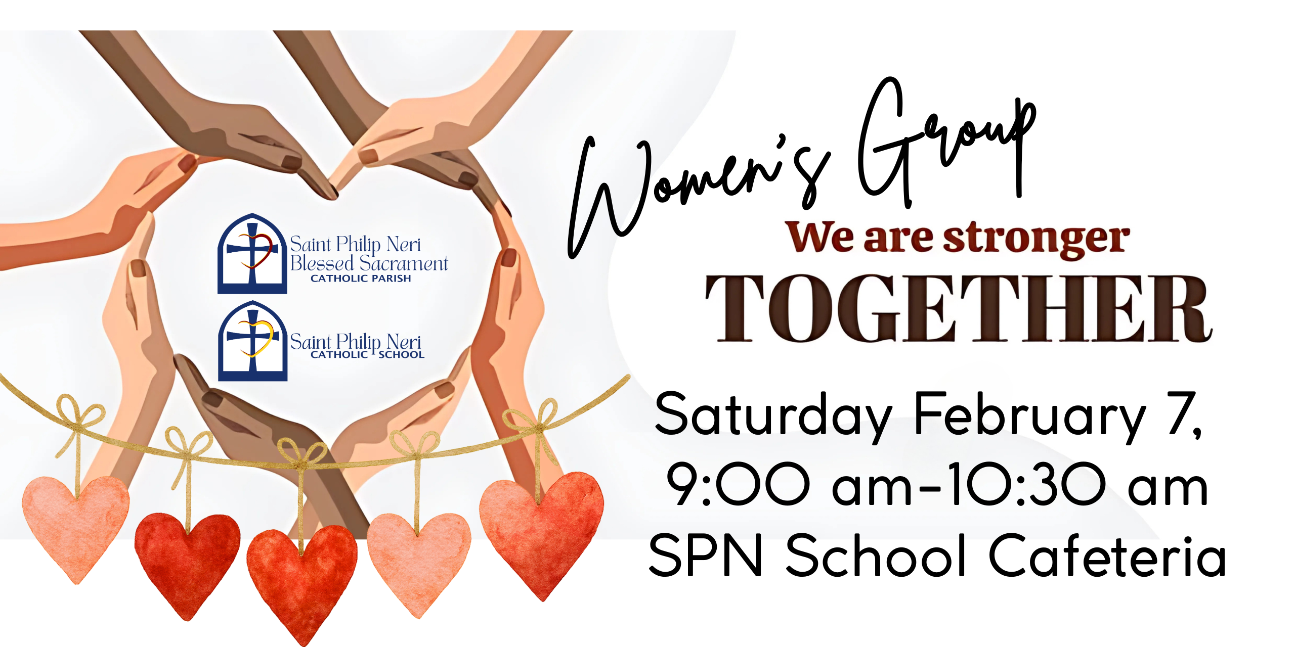 February 7, 9:00 am-10:30 am in the SPN School Cafeteria. Are you looking to meet new people and enjoy good conversation? Join other women from our parish and school for fun, relaxed get-togethers. Think coffee, snacks, laughter, and