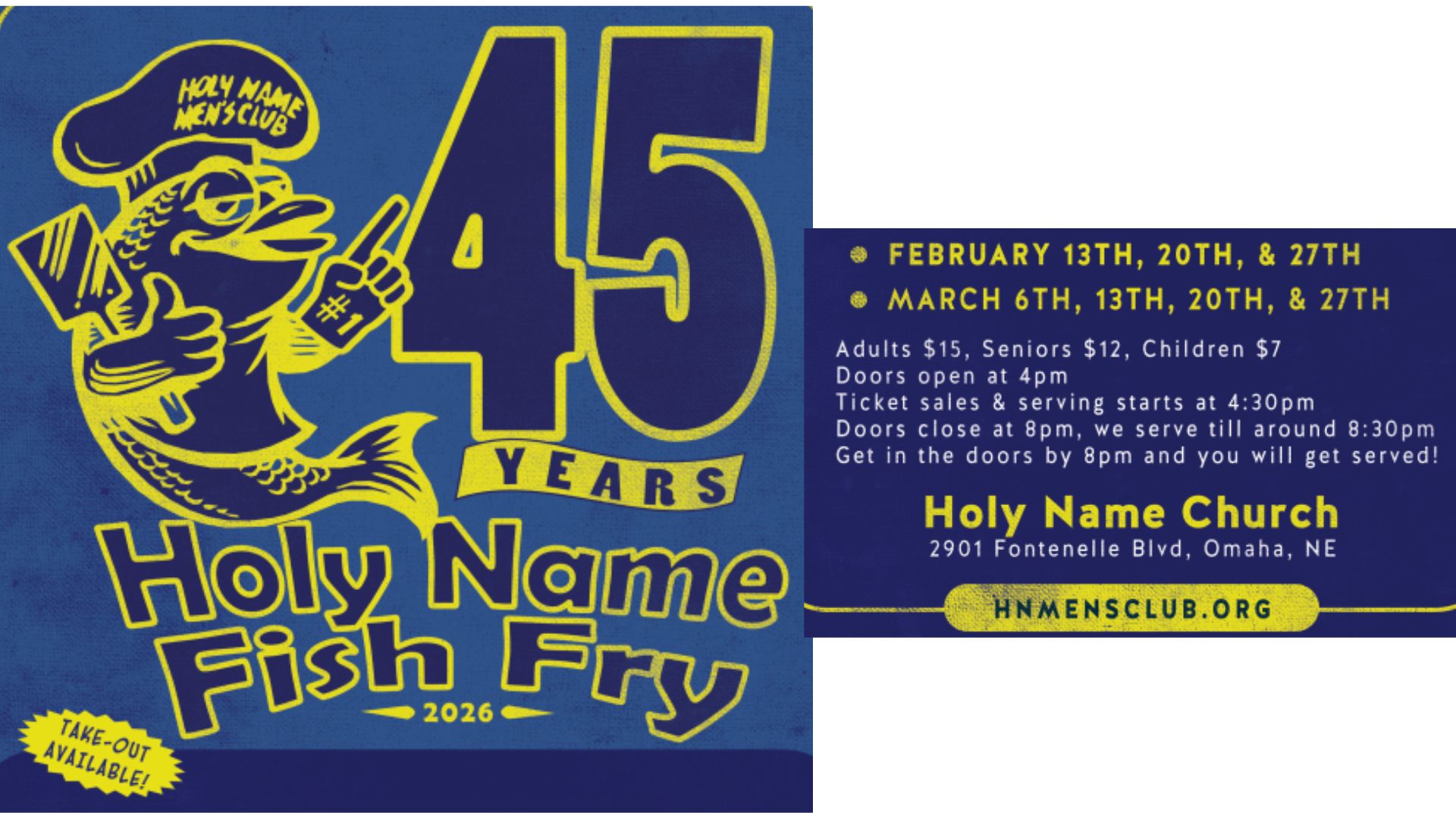 Join parishioners at Holy Name and co-fraternity of parishes to enjoy their famous Fish Fry. Every Friday in Lent. Come Early! Take-Out available!