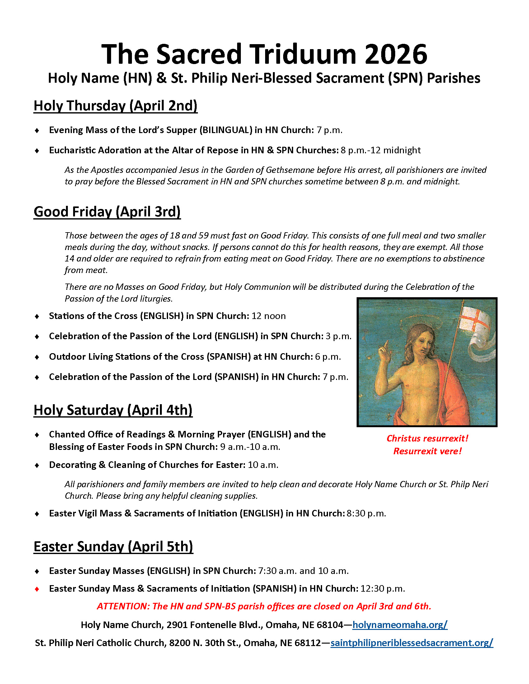 5:30 p.m.-6:15 p.m. (Eng. & Sp.) – Holy Name Church