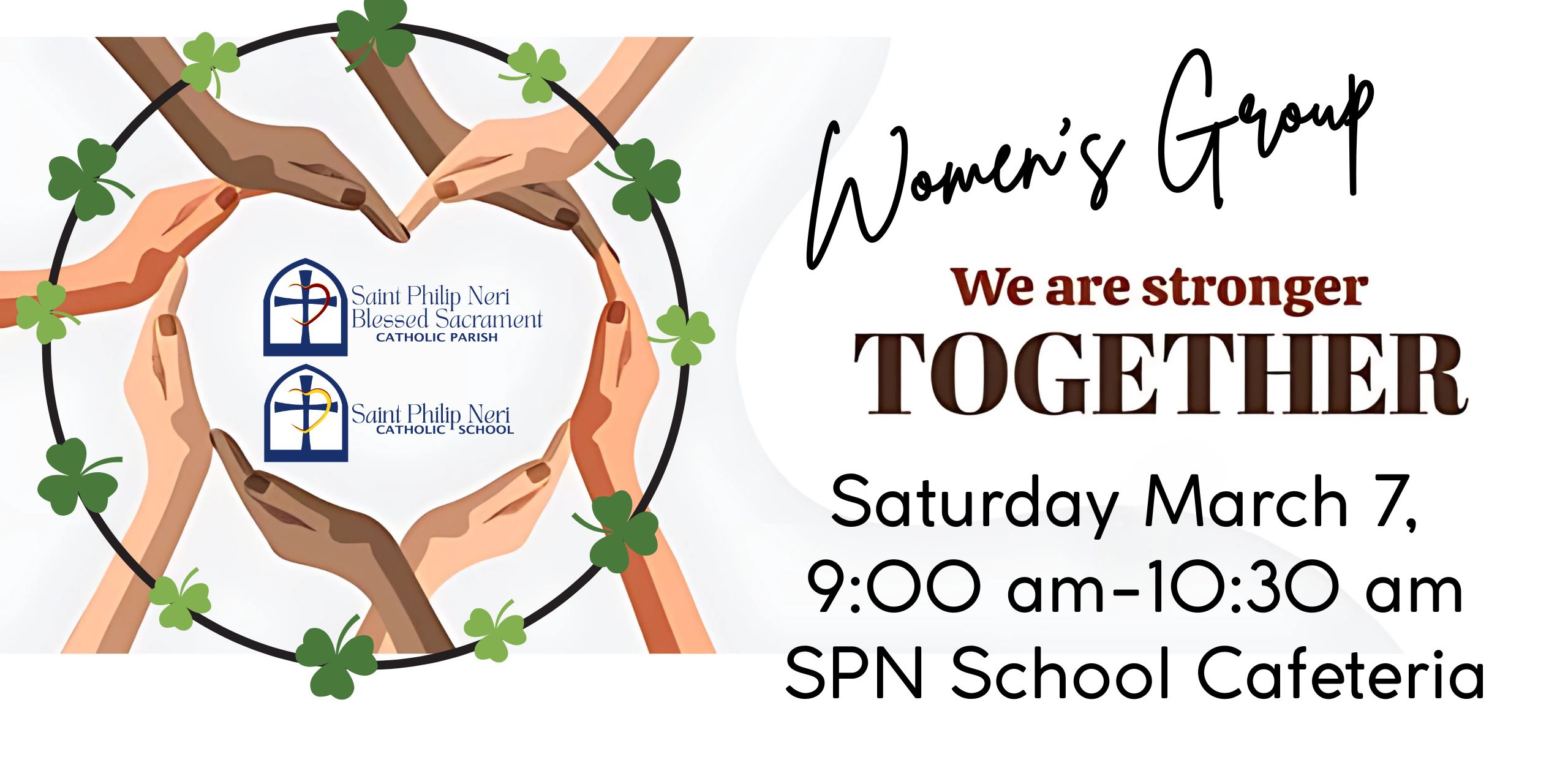 March 7, 9:00 am-10:30 am in the SPN School Cafeteria. Are you looking to meet new people and enjoy good conversation? Join other women from our parish and school for fun, relaxed get-togethers. Think coffee, snacks, laughter, and making new friends – no homework, no pressure. Come as you are, stay for the connection. Please bring a snack to share.